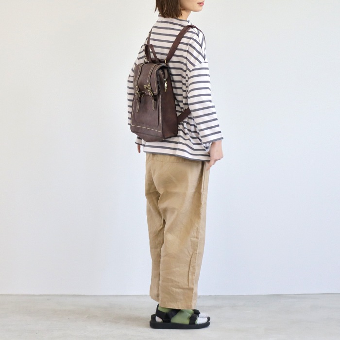 切り替えデザインでリメイク風のLIBREのバッグでカジュアル感をプラス。
