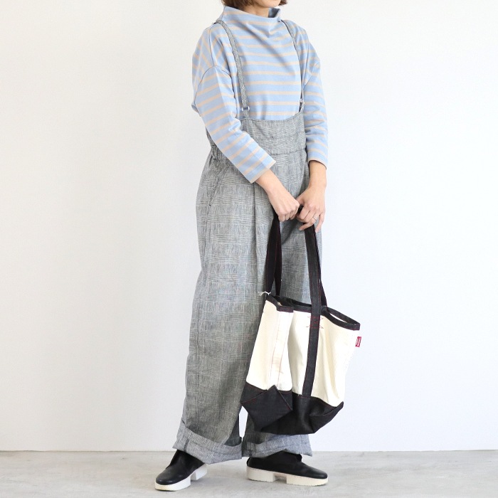 ボトムスは昨年から続き人気のチェック柄。技ありサロペットでこなれ感を出して。