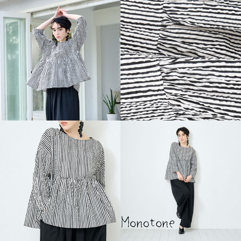 表情のあるリップル素材が大人可愛いシャツです。軽やかなローン素材とポコポコとした表情のある生地表面でさらっと快適な着心地が魅力の1着。