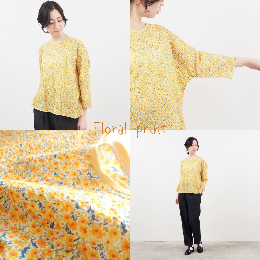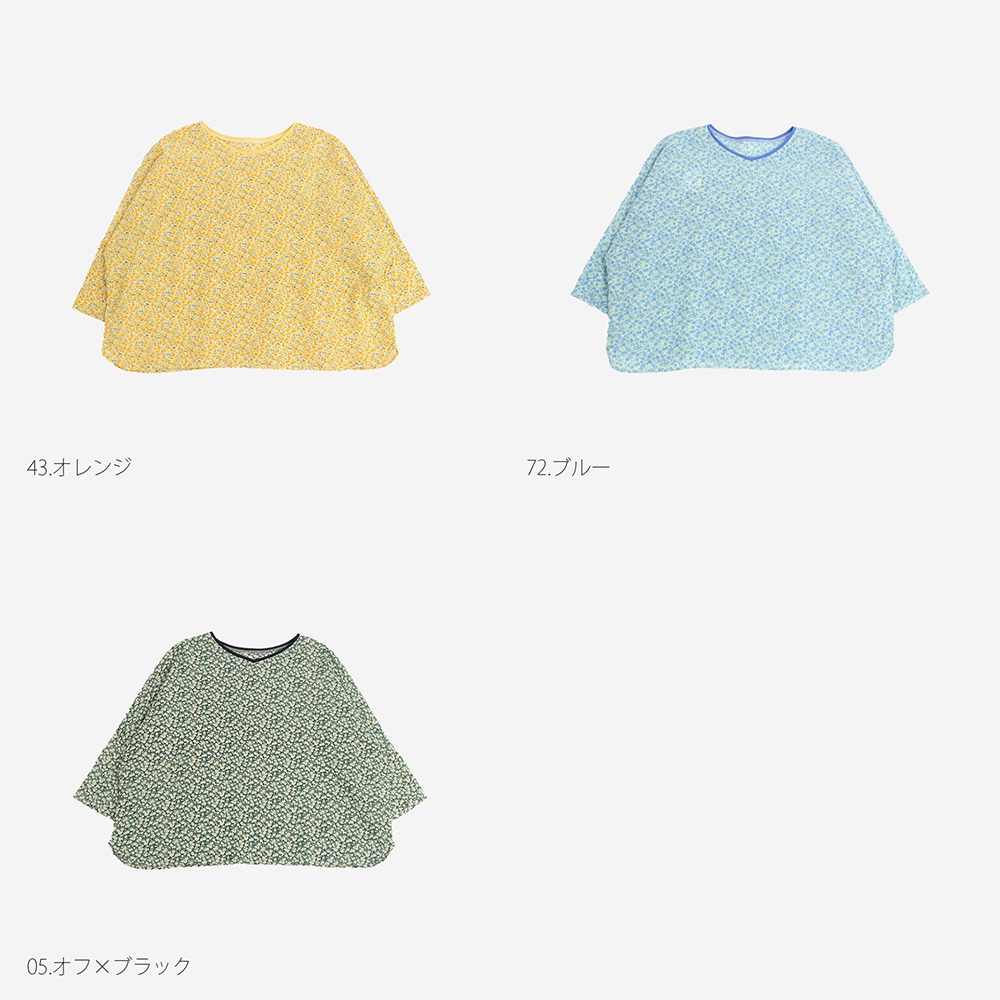 ミラクルウェーブリバティプリント バトーブラウス7分袖