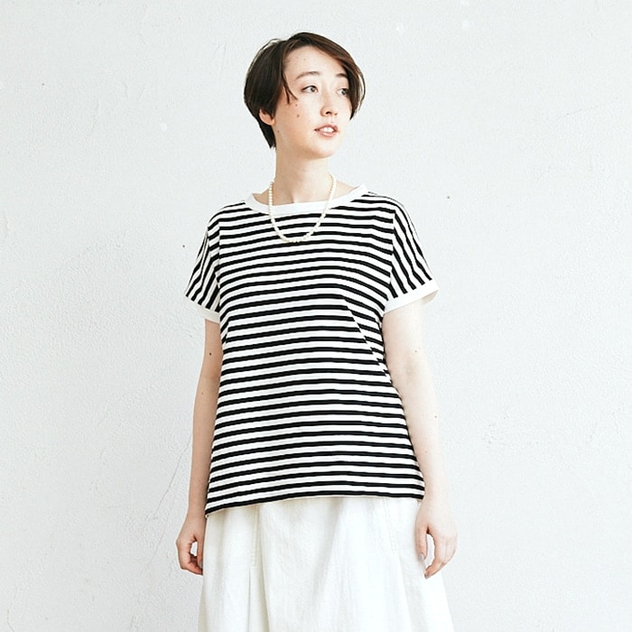 定番のボーダーTシャツも、組み合わせ次第でこんなに表情豊かに。