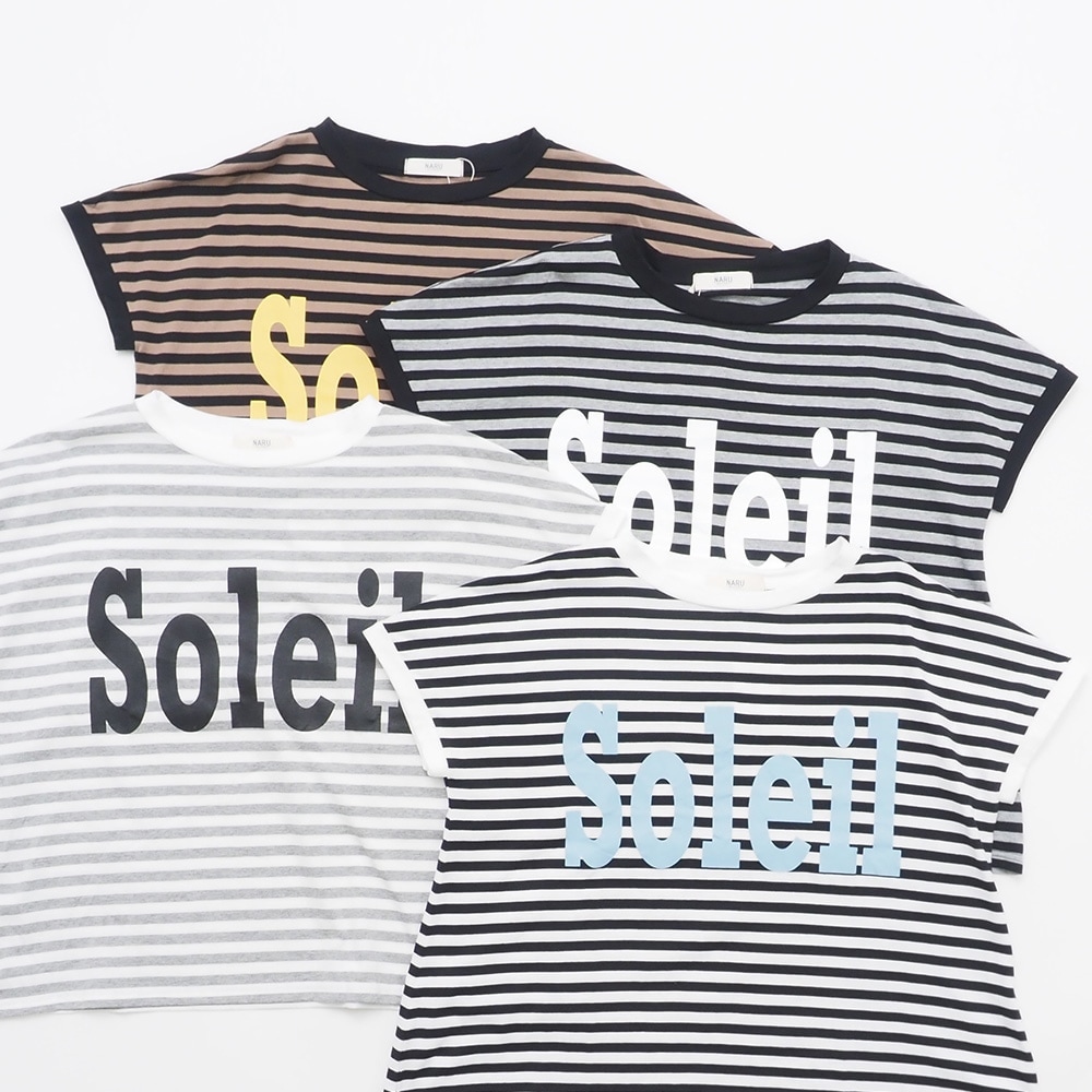 定番ミナミボーダーTに「Soleil(ソレイユ=太陽)」のロゴプリントを大胆にあしらった、夏にぴったりのボーダーT。1枚でオシャレ見えする主役Tシャツです。