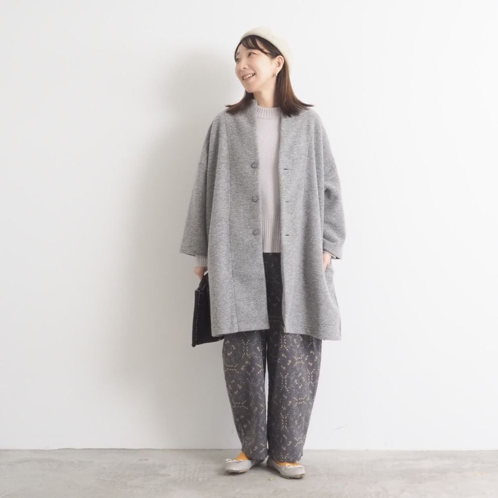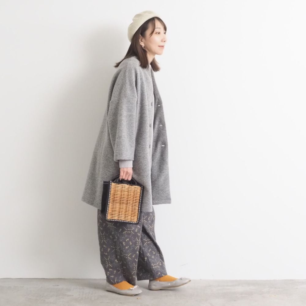 やわらかな表情のウールコートに、淡いニットを重ねることで、全体を軽やかにまとめています。
