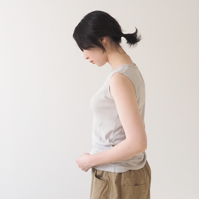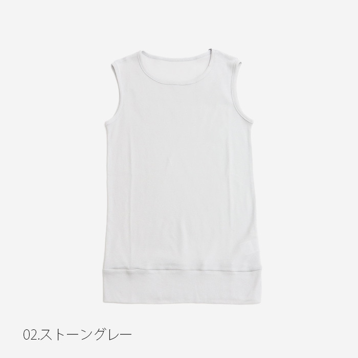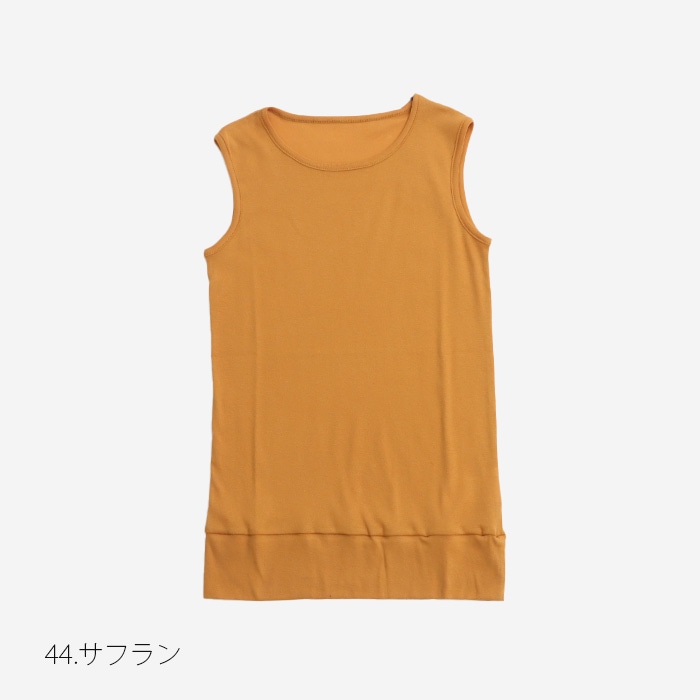 柔らかな肌触りが心地よいソフトフライスタンクトップです。丈が長めで裾は生地が二重になっており、ぴったりとしたフィット感。