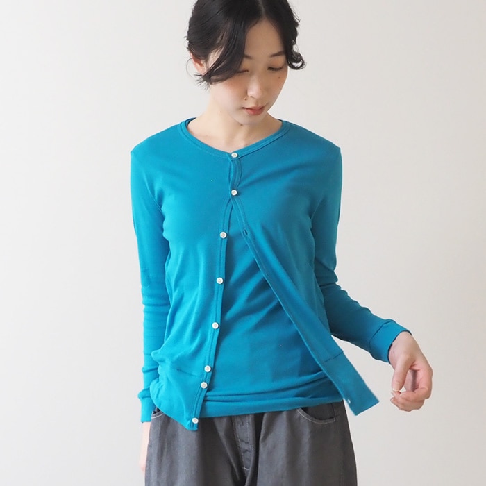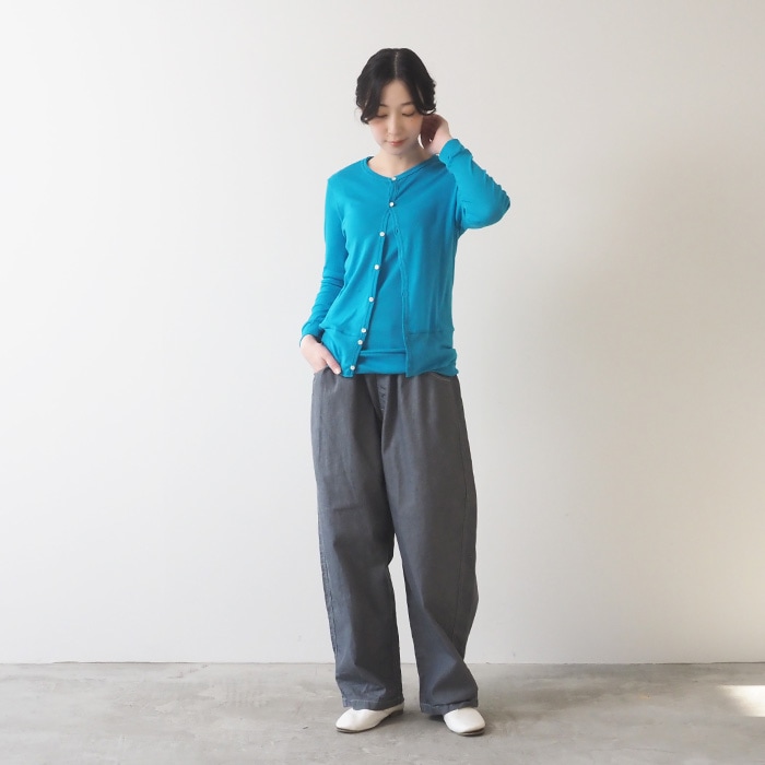 同素材のソフトフライス ロングスリーブカーディガン 648201BFとセットアップにも。