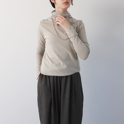 コットンですがボリュームのあるタートルネックで寒い時期でもしっかりと首元をあたたかく覆ってくれます。ナチュラルな色味だけでなく赤やグリーンなど NARUでしかない差し色も魅力です。毎年出る新色を楽しみにしておられる方も多くNARUのロングヒットアイテムです。