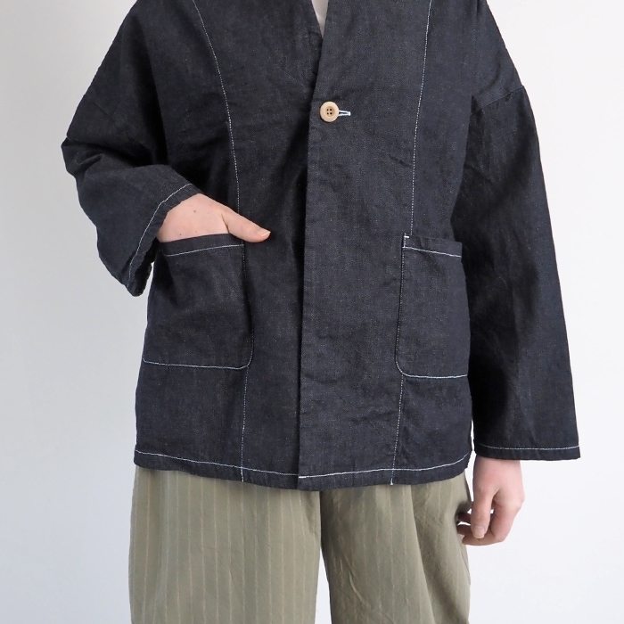 デニムならではの経年変化も楽しめるのが魅力。着るたびに少しずつ風合いが育ち、自分だけの一着へと変わっていきます。
