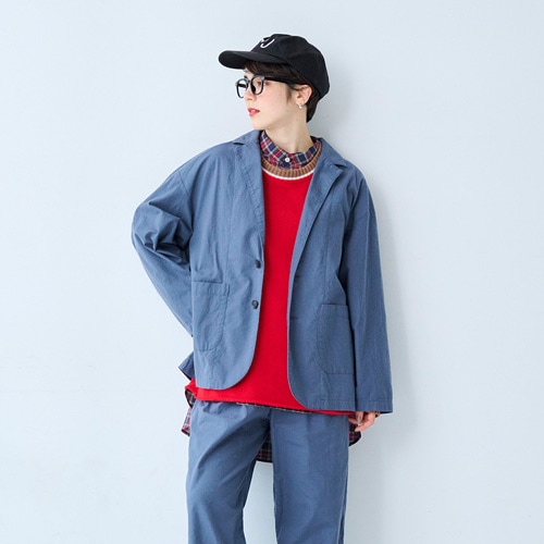 襟元、袖、裾のリブが着こなしにアクセントをプラス。