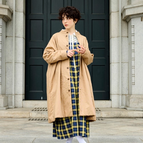 クラシカルな雰囲気漂うイタリアンエアリーチェックリングドットボタンブルゾンです。ふんわり軽やかな着心地で、柔らかいので持ち運びにも便利です。