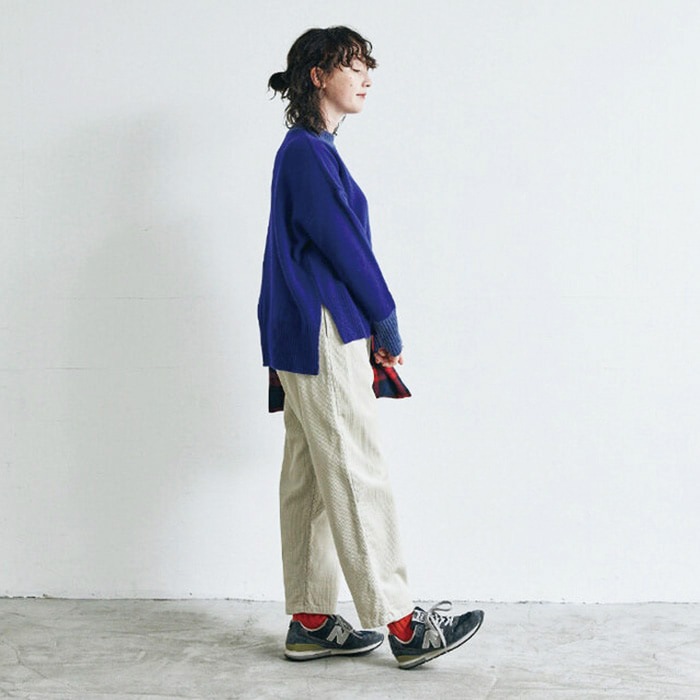 サイドのスリットは大きく入れ、シャツなどとのレイヤードもオシャレに着こなしていただけます。