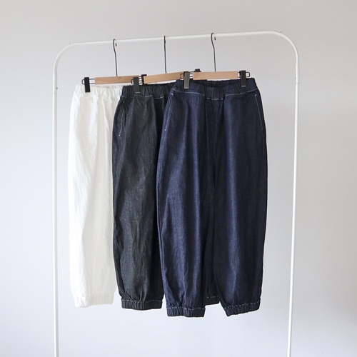 裾に向かって細くなるテーパードシルエットで脚のラインを自然にカバーしてくれます。スニーカーはもちろん、パンプスなどと合わせた上品なシューズなどとも相性良く着こなしていただけます。