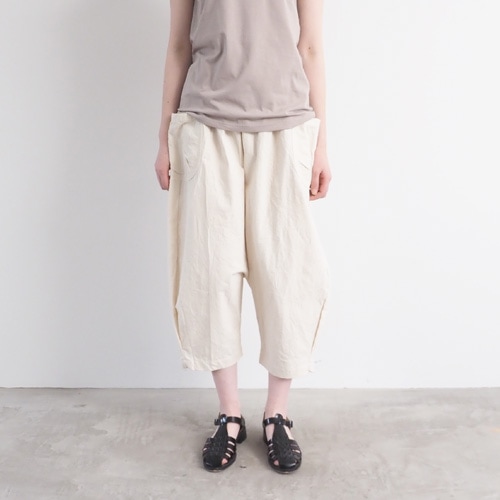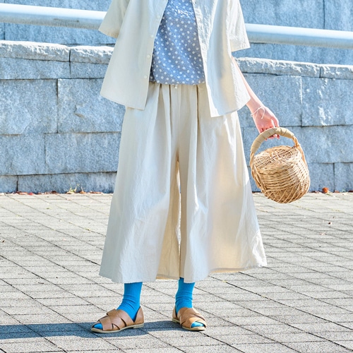 ウエストは総ゴムでストレスフリーな着用感。フロントのタックが綺麗なラインを演出します。