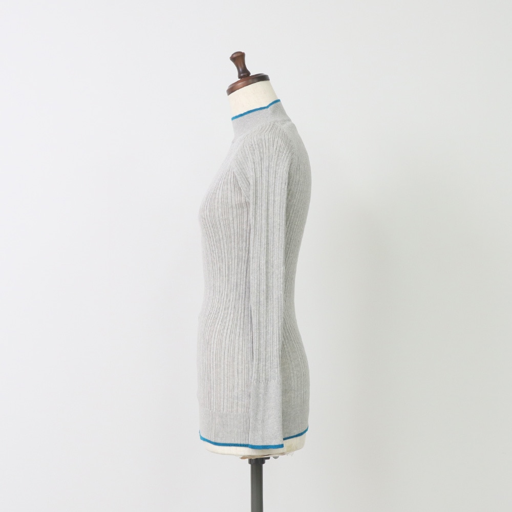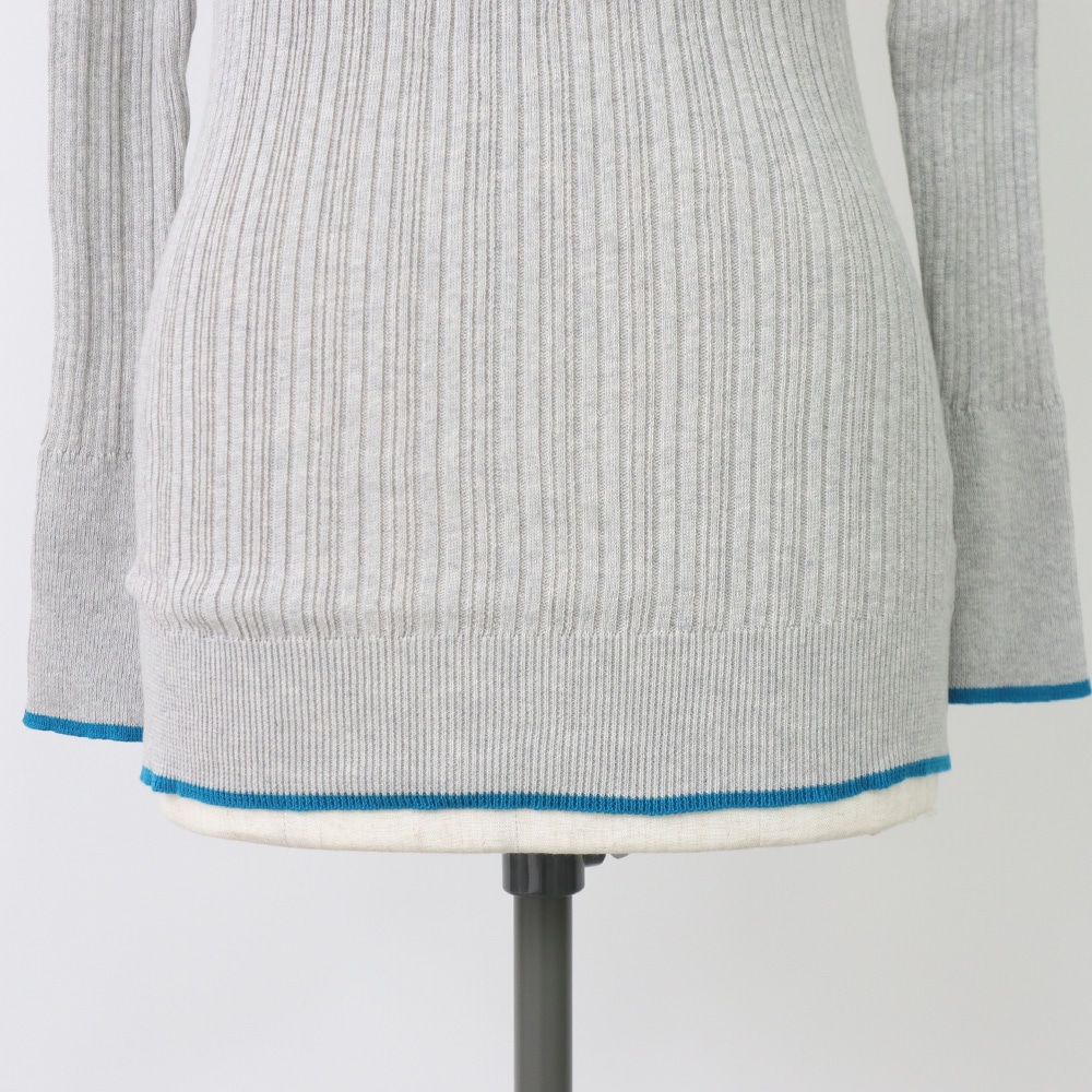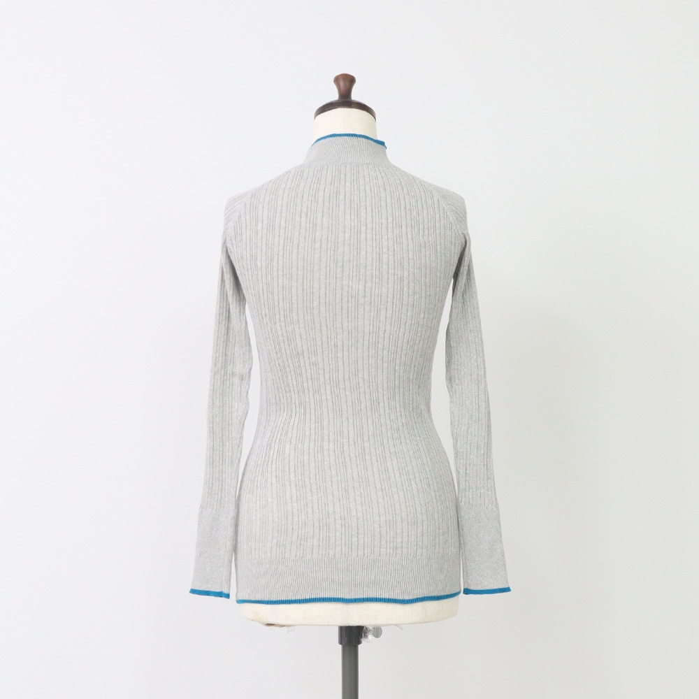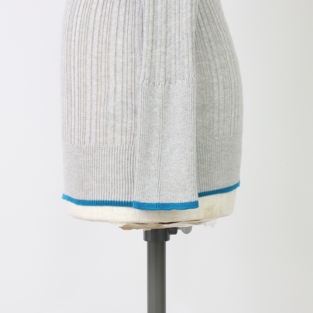 リブ編みが縦ラインを強調し、すっきり見せてくれるフロントデザイン。配色ラインがシンプルな中にアクセントをプラス。
