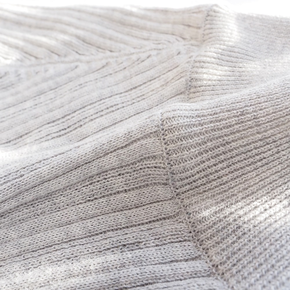 高品質な綿コーマ糸を使用したこだわりの柔らかな風合いです。コーマ糸は綿の中でも繊維が滑らかなものだけを選んだものです。ウールのようにチクチクせずふんわりとした着心地です。ニット職人がいるからできる素材感をお楽しみください。