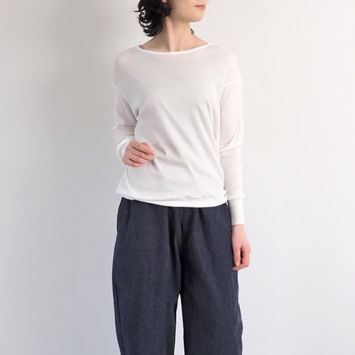 程よい厚みとコシがあり、優しく肌になじむ上品なカットソー生地です。きゅっと細かな編み目で毛羽立ちが少なく、お洗濯を繰り返してもさらりとした着心地が続きます。