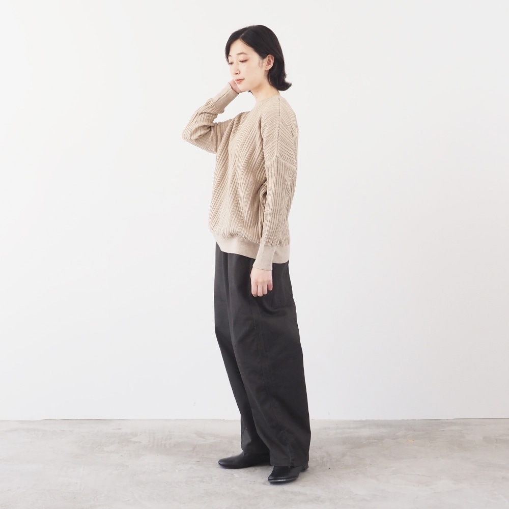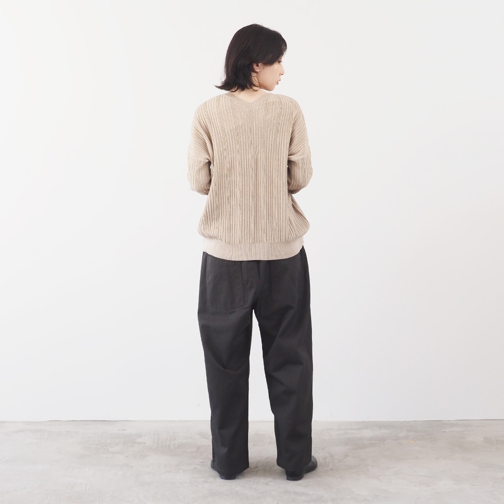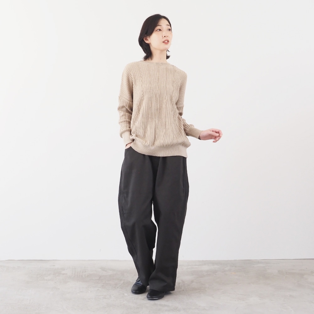 洗いを繰り返したような、風合いが楽しめるカツラギニューセリサイト ノッポパンツです。ゆったりワイドなストレートシルエットで、脚のラインを拾わず、気兼ねなくご着用していただけます。シンプルなTシャツやトレーナー、ニットなど幅広いトップスと合わせていただけるのでロングシーズン活躍してくれる1着です。