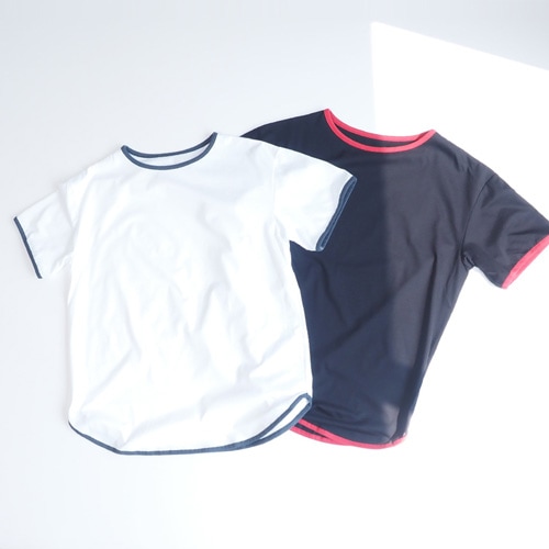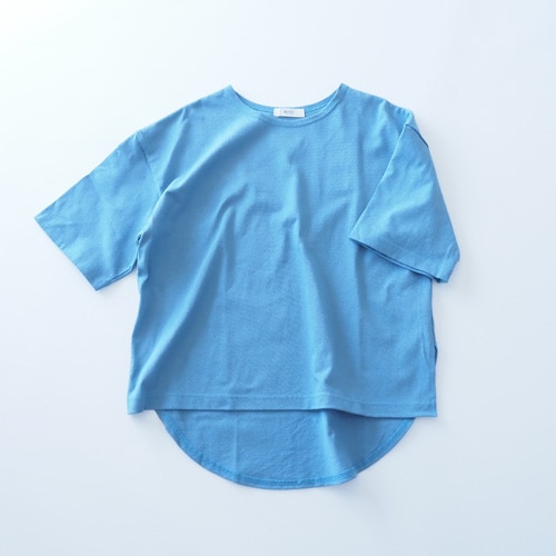 長すぎず短すぎない丈感で、パンツにもスカートにもバランス良く合わせられる万能トップス。裾がややフィットしているので、タックインしなくてもすっきり見えます。