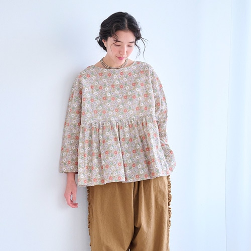 ※顔料プリントのため洗濯により生地の色と混ざり合い少しあせた色に変化していきます。素材特性としてご理解の上ご購入下さい。