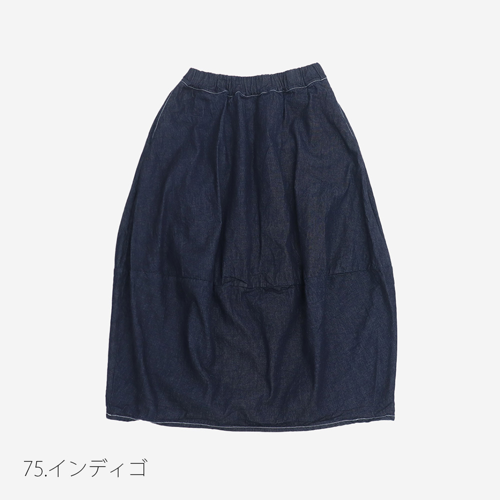 ふんわり包み込む魔法のシルエットが特徴の8ozムラデニム エッグスカートです。ゆるっと丸みのあるバルーンラインが、気になる部分をやさしくカバー。まるでスタイルアップして見える嬉しい形です。