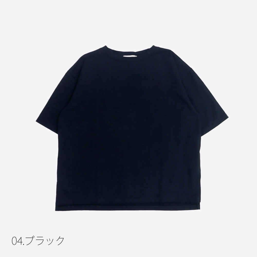程よい厚みと、しっかりとしたコシのある天竺素材を使用しております。キュッと細かな編み目で毛羽立ちが少なくサラリと心地よいタッチ感をお楽しみいただけますよ。