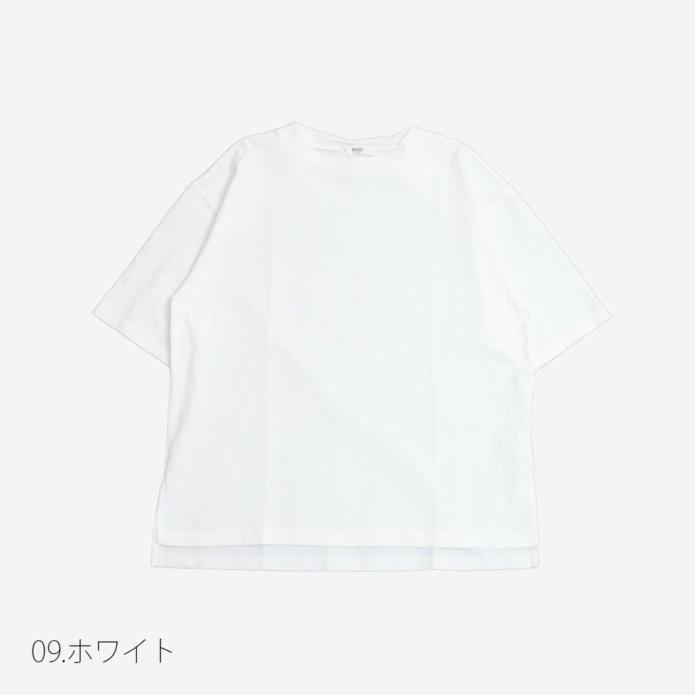 こだわりの“ちょい袖丈”。二の腕をさりげなくカバーしてくれる絶妙な袖丈も嬉しいポイント。サイドスリットで動きやすさも◎「ただのTシャツ」じゃ終わらない、スタイルアップ効果も。