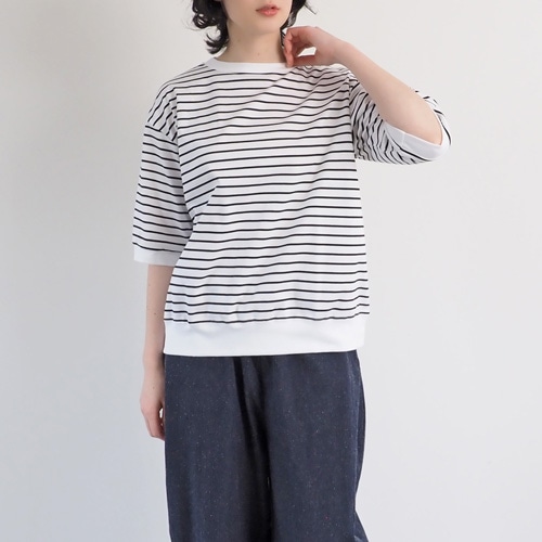 NARU(ナル) 60/2ハイゲージ天竺ボーダー なみなみプリントT 667207