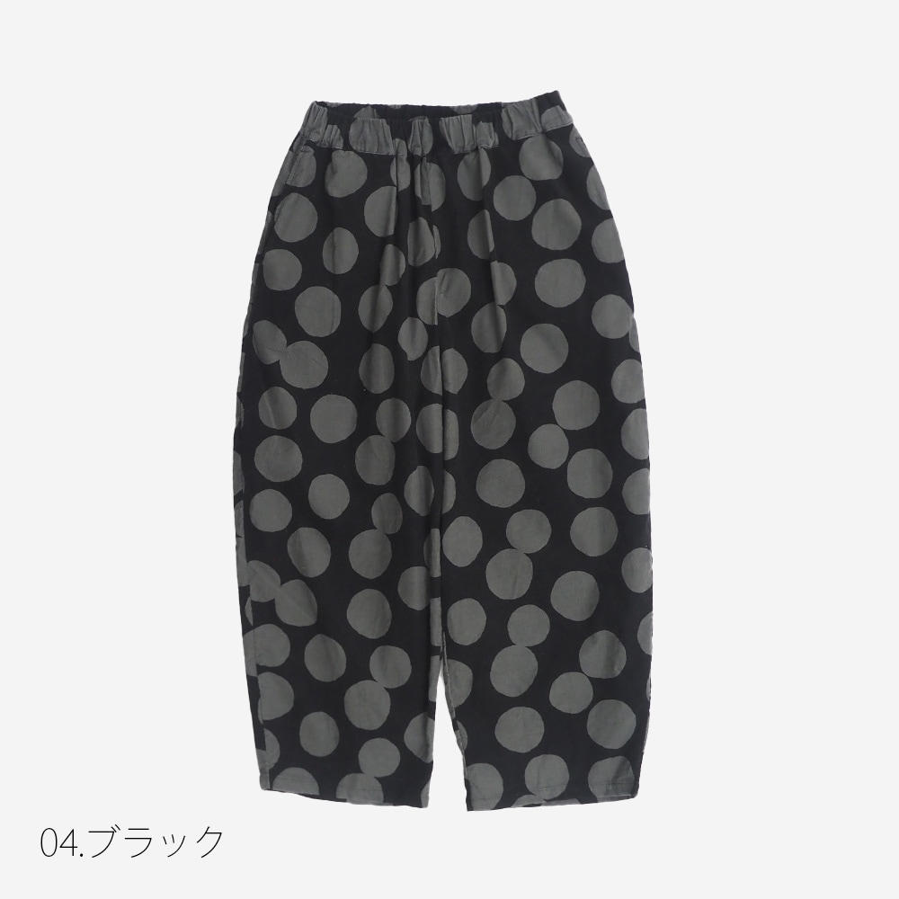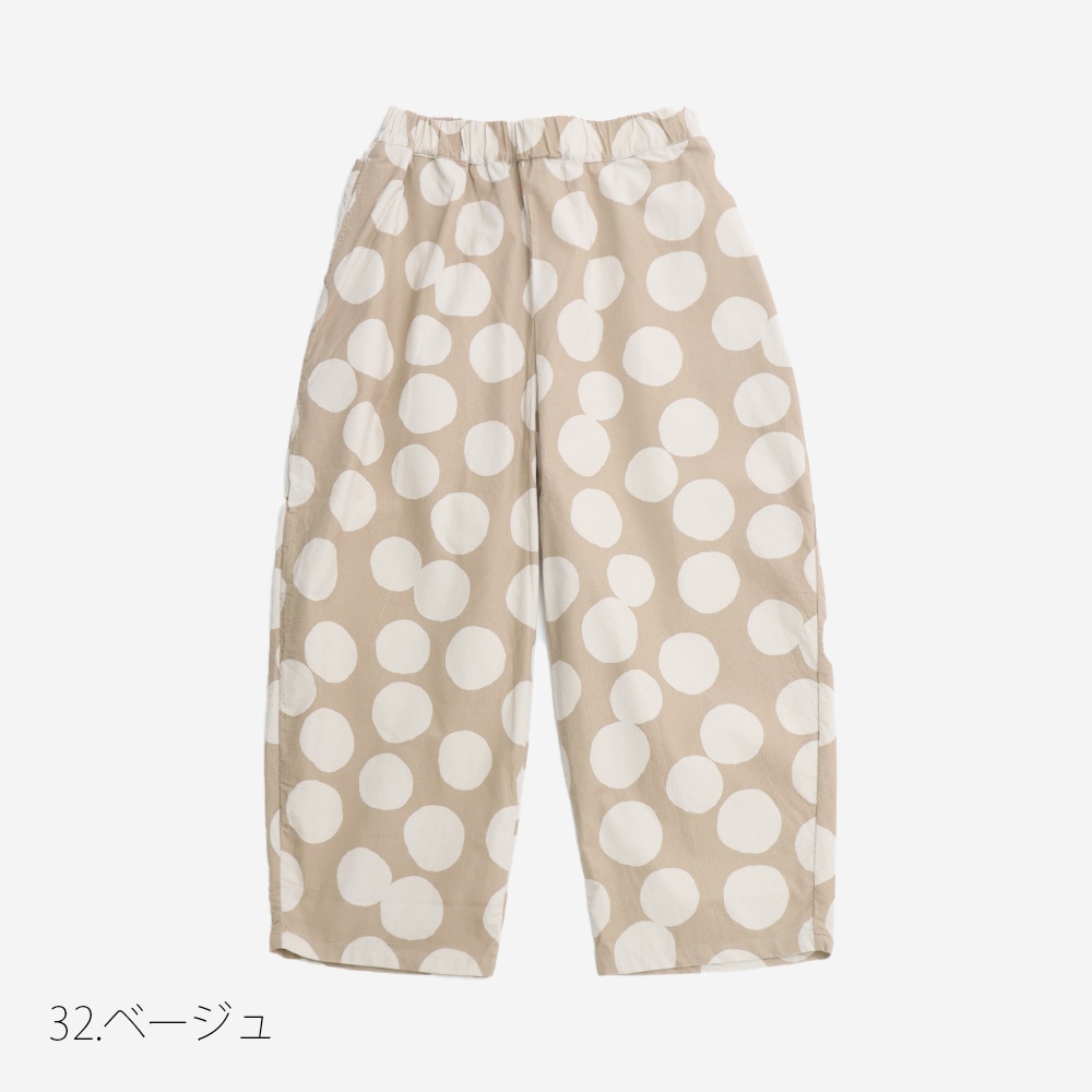 コーディネートの主役になる存在感のあるドット柄が特徴の21Wコール天ランダムドット エッグパンツです。細畝の上品なマット感とドット柄の遊び心がマッチ。シンプルなトップスに合わせるだけで、シーズンムードが高まります。