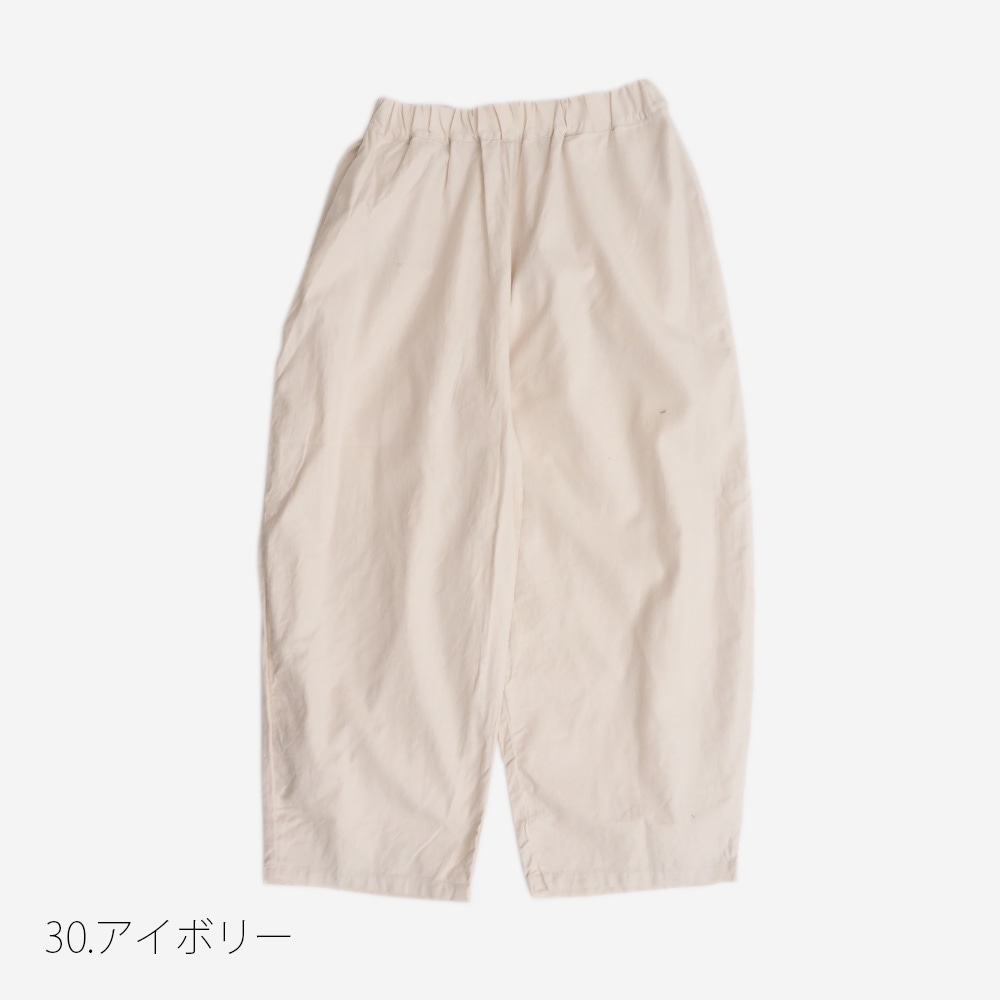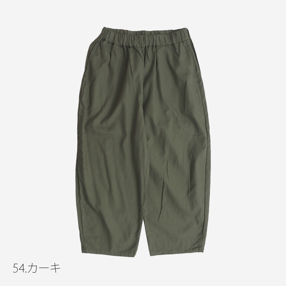 裾に向かってゆるやかに丸みを帯びたラインが特徴の30ビエラワッシャー エッグパンツです。ウエストは総ゴムで腰まわりはゆったり、裾はすっきり見せてくれるため、体型を選ばずバランスよく穿けます。