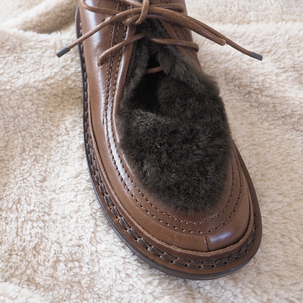 アッパーレザー甲部分のムートンカラーを特別にNARU FACTORYで別注したオリジナルカラー商品です。