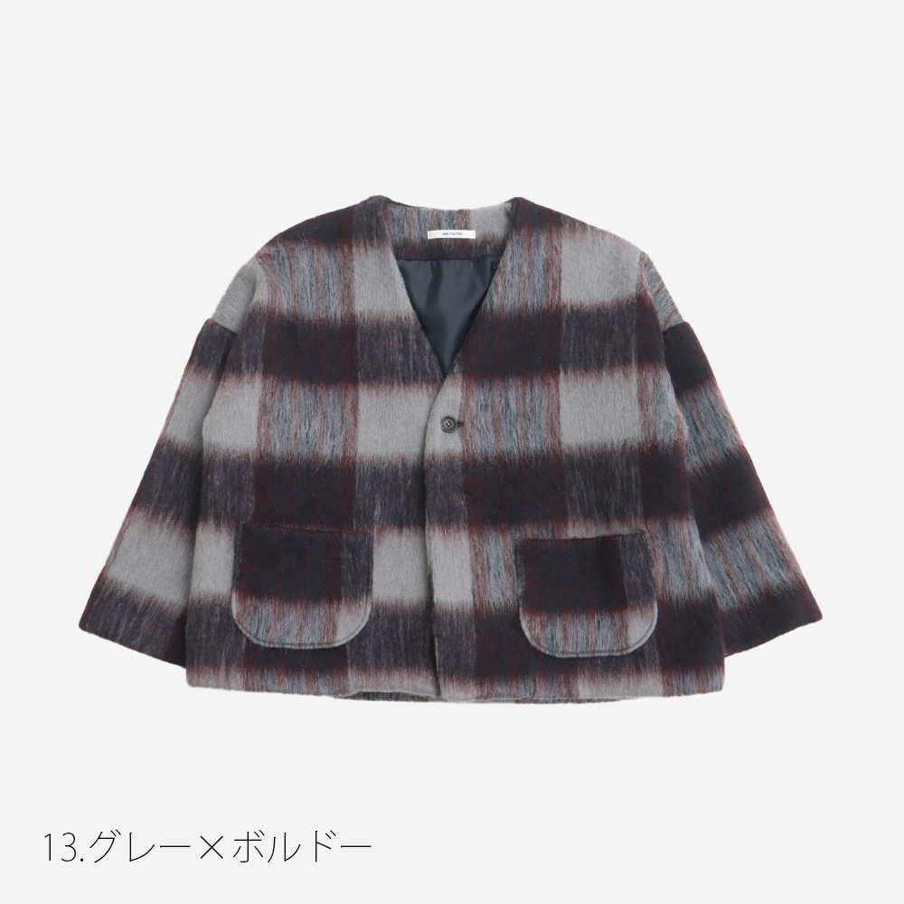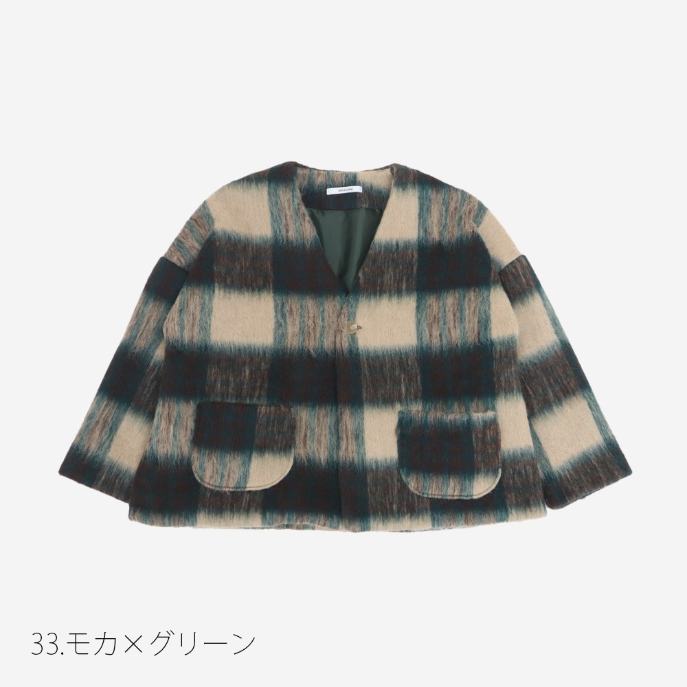 NARU(ナル) シャギーチェックノーカラージャケット 668916