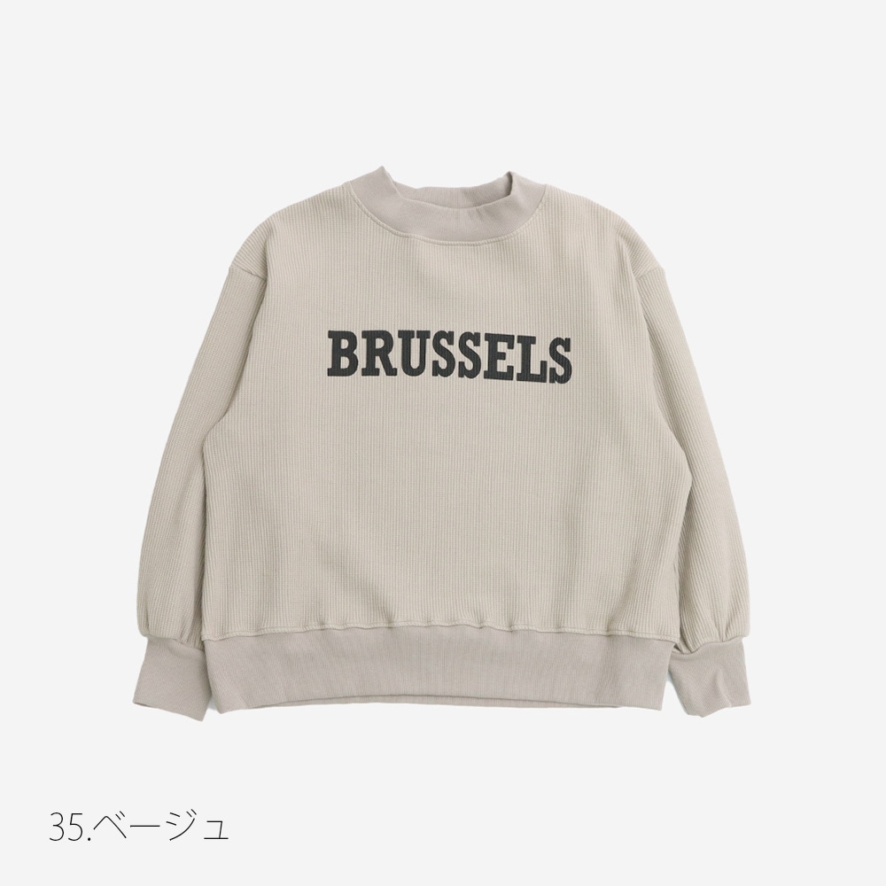 立体感のあるワッフル地に、「BRUSSELS」ロゴをプリントしています。