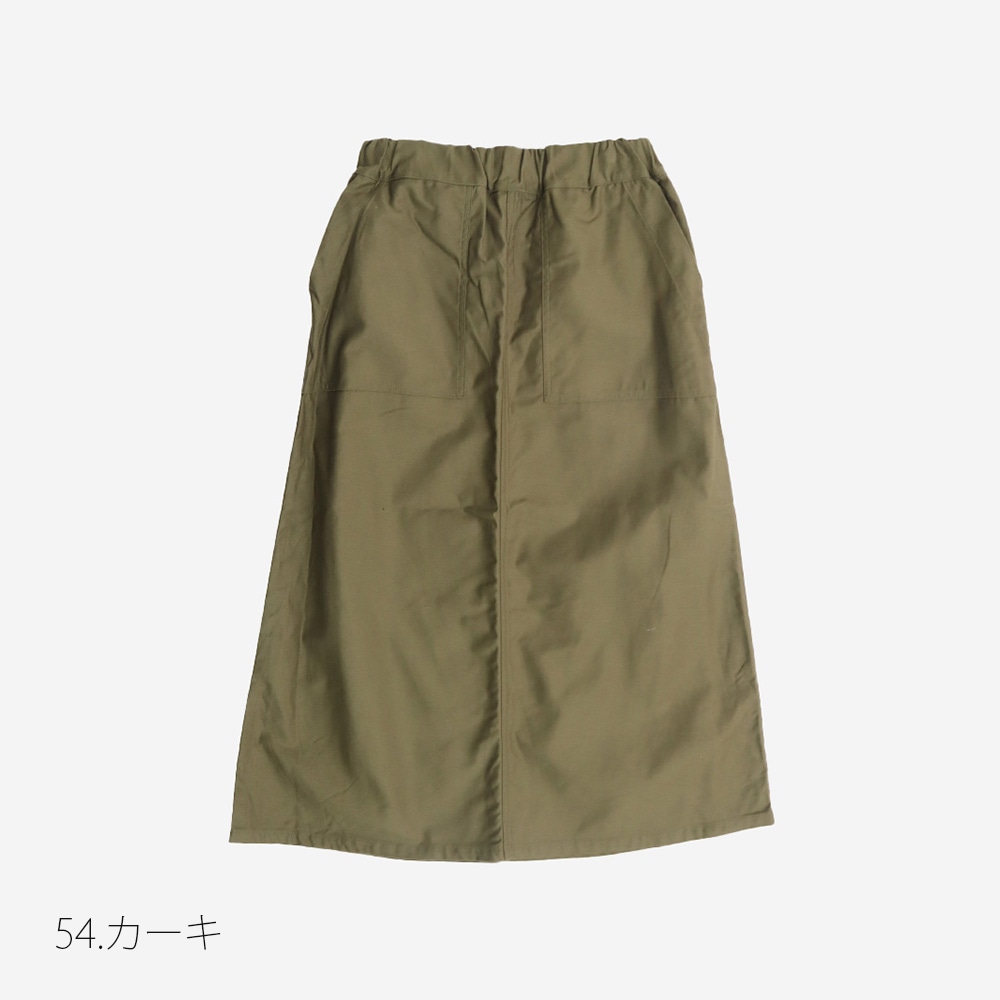 ムラ糸ならではの自然な色の濃淡と、バックサテンのしなやかな風合いが、穿くほどに味わいを深める、ムラ糸ミリタリーバックサテン ベイカースカートです。フロントのベイカーポケットがデザインのアクセントになりながら、実用性もバッチリ。Iラインシルエットですっきり見えつつ、体のラインを拾いにくいバランス。スニーカーにも革靴にも合う丈感で、カジュアルからきれいめまで、幅広いコーデに対応します。