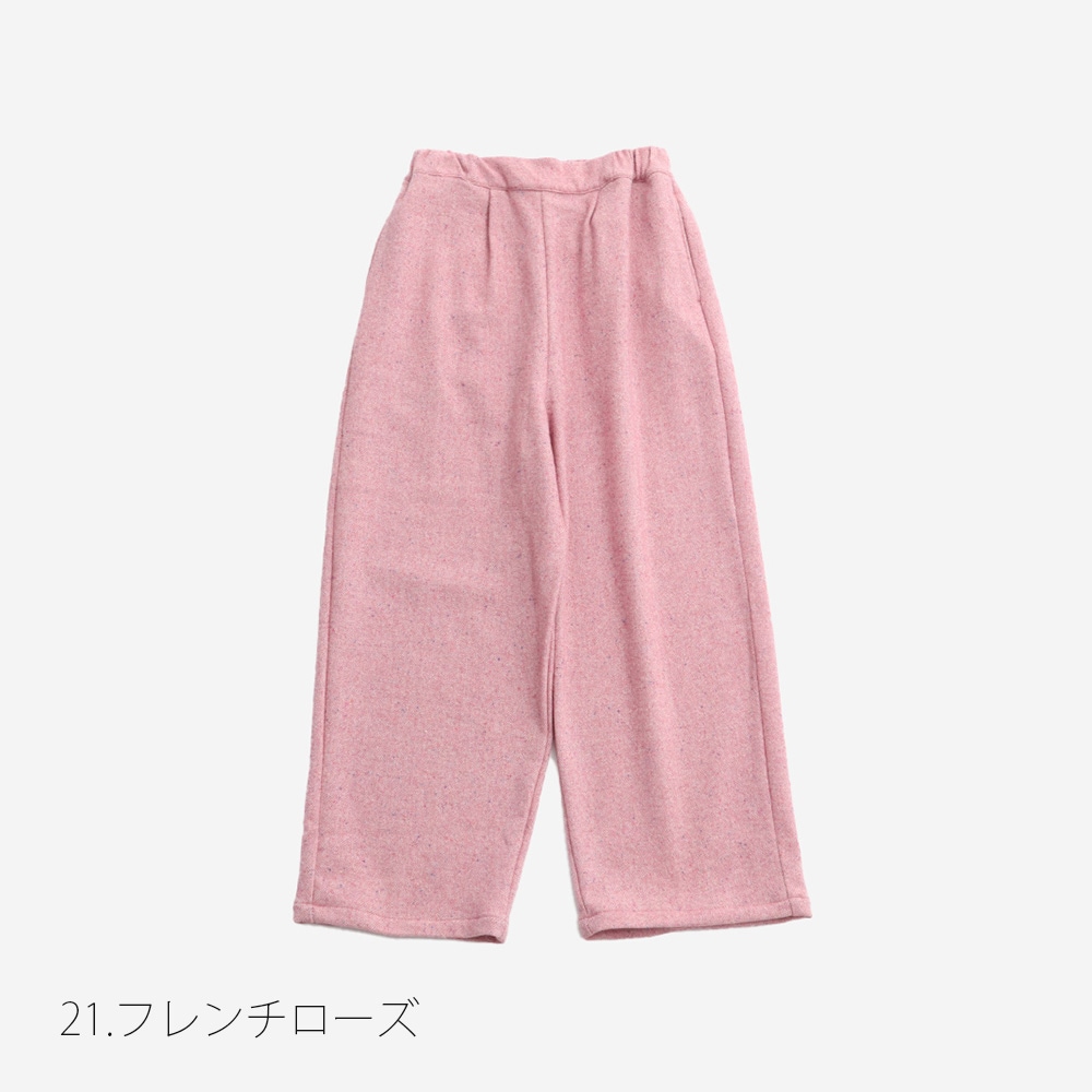 やわらかな落ち感のワイドシルエットが歩くたびに表情を変え、ヘリンボーンネップの素材感が日常のコーデにさりげない温もりと品を添えます。