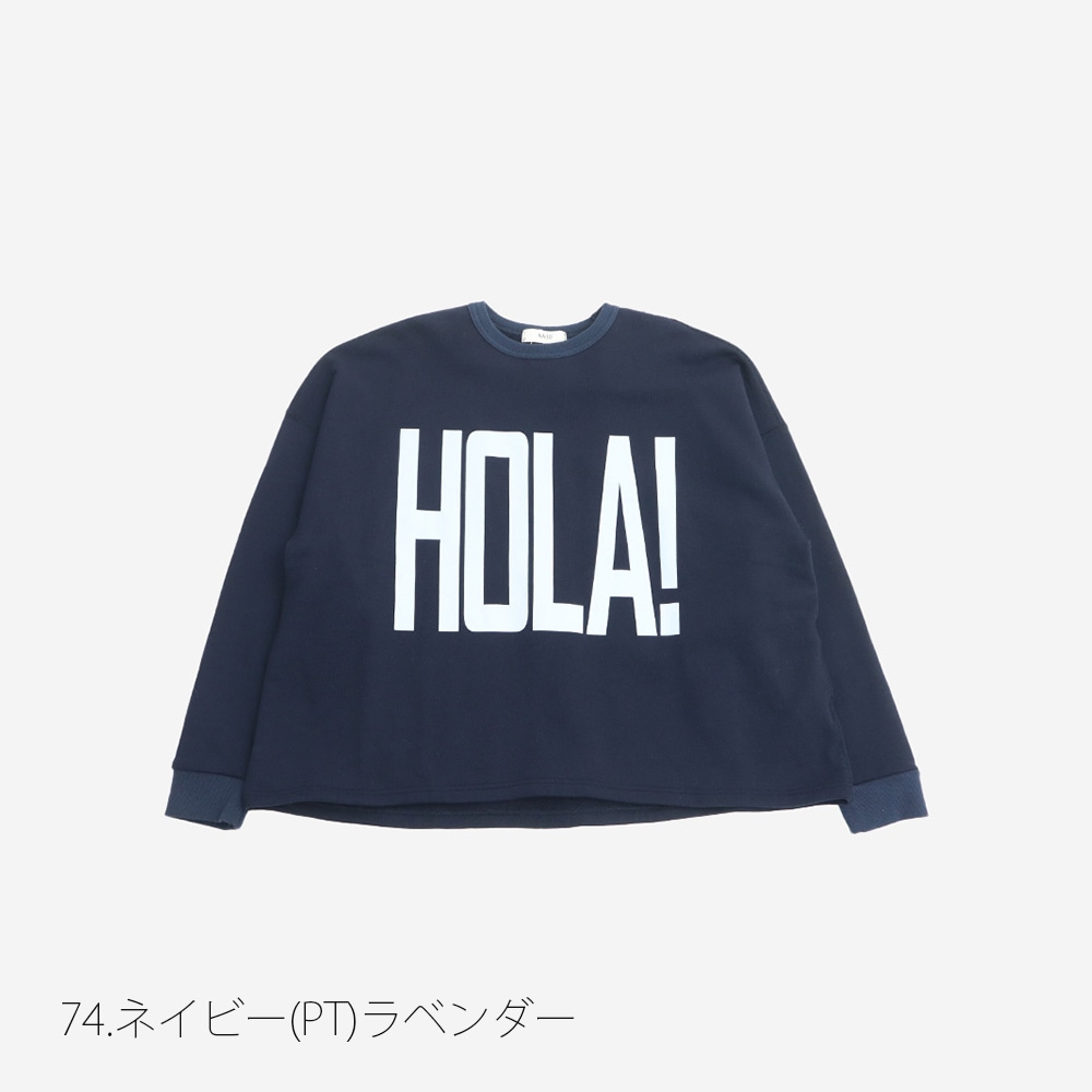 季節の変わり目にぴったりな、30/10セントラル裏毛 HOLA!プリントPOです。胸元に添えた「HOLA!」はスペイン語で「やぁ!」「こんにちは!」というニュアンス。大きな英ロゴがコーディネートの主役に♪。
