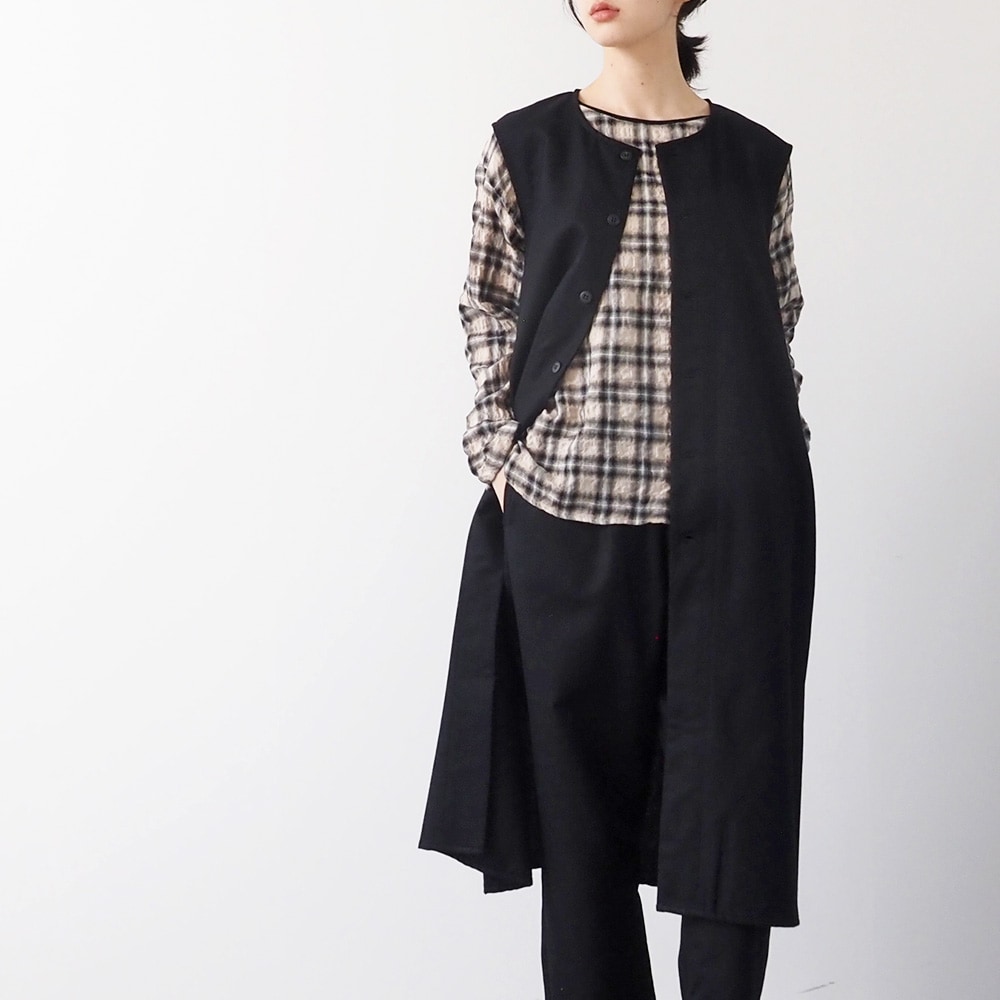 タートルニットを合わせれば冬らしく優しく、シャツを合わせればきちんと感のある装いに。ノーカラーコートやショート丈アウターを羽織れば、きれいめな冬のレイヤードが完成します。ストールを巻いてあったかくお出かけも◎。