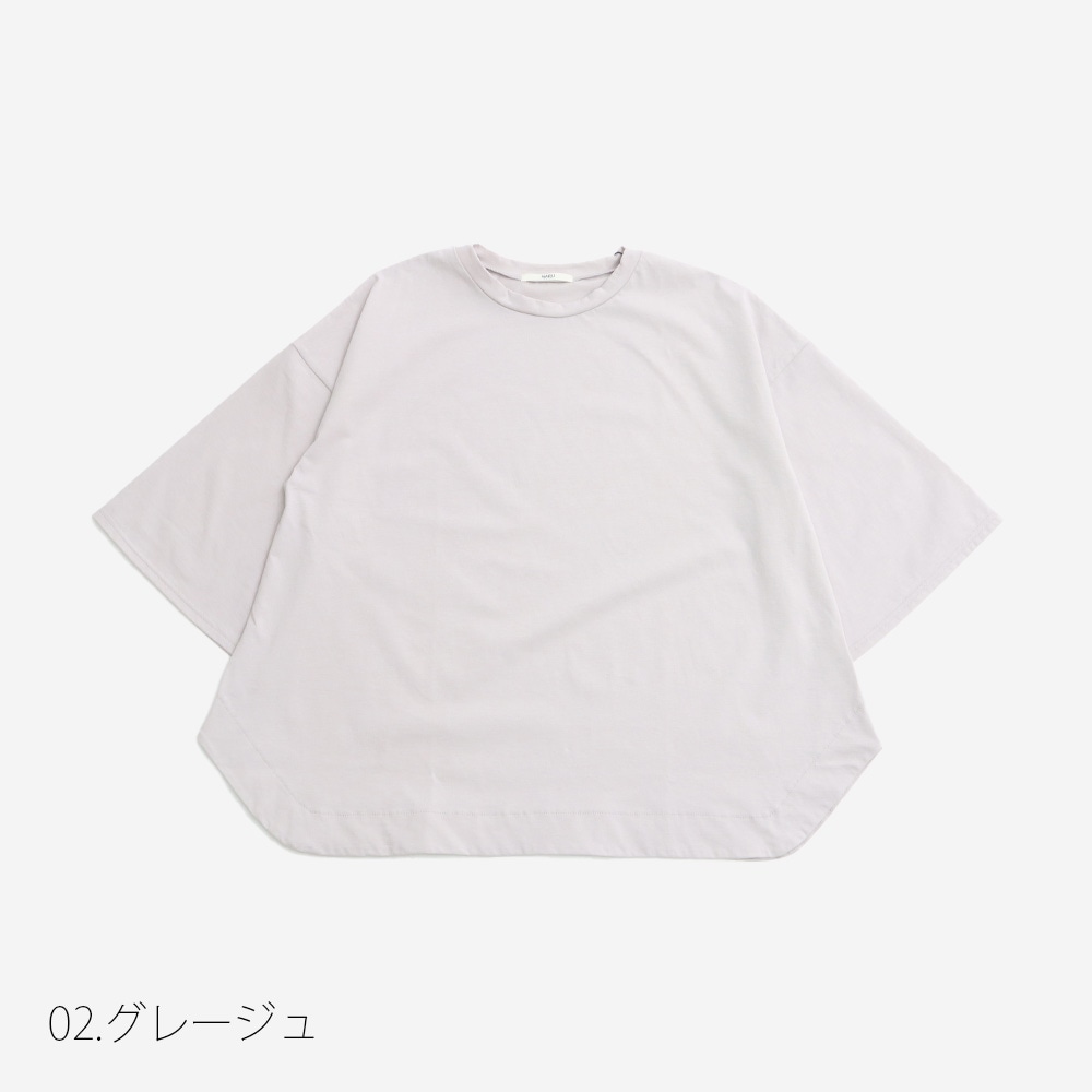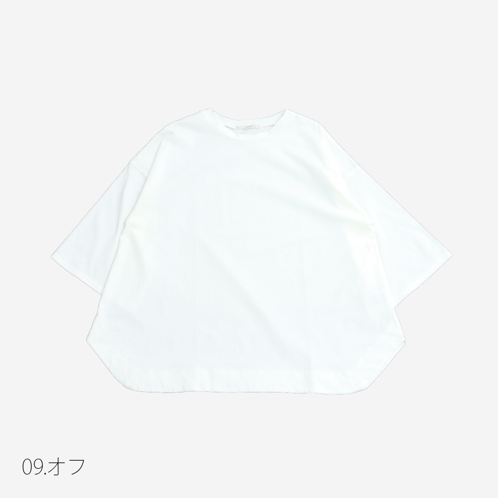 ゆったりとした身幅と、ひじが隠れる袖丈が印象的なシルエット。体のラインを拾いにくく、自然な落ち感で大人っぽく着られるバランスに仕上げています。