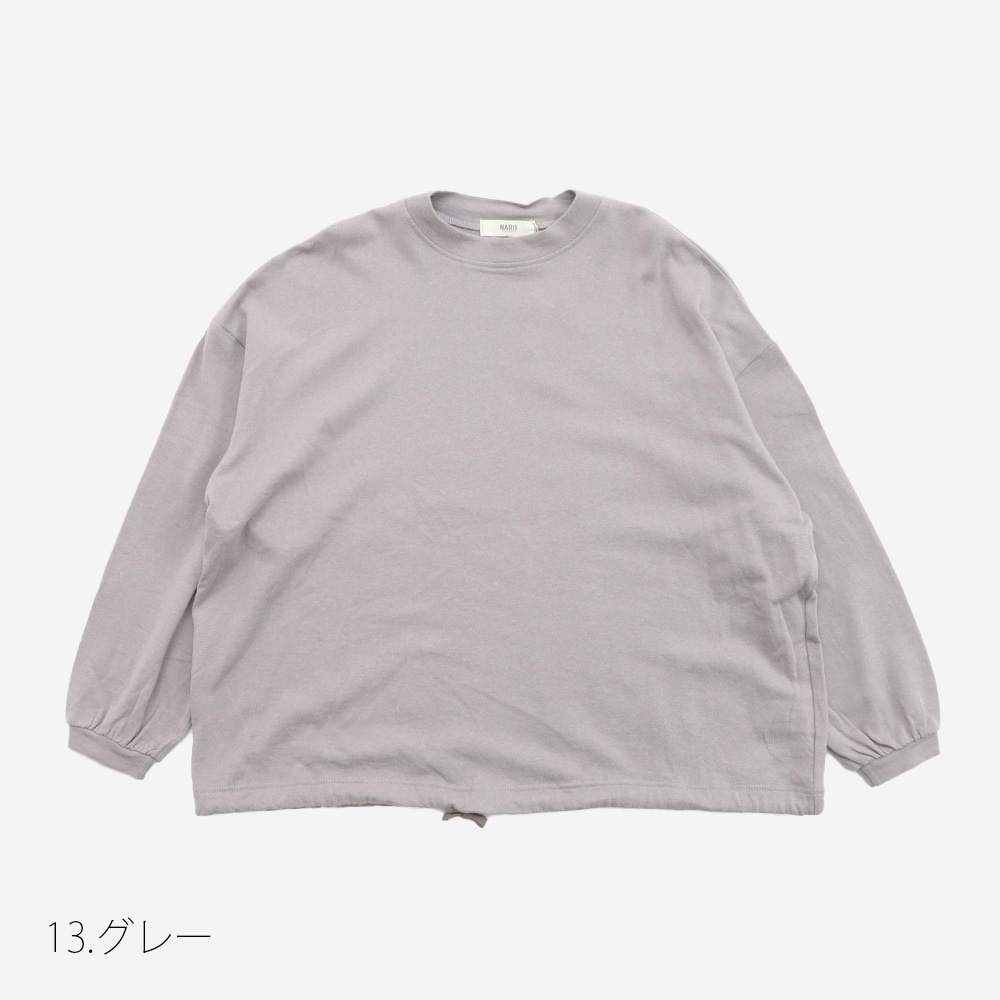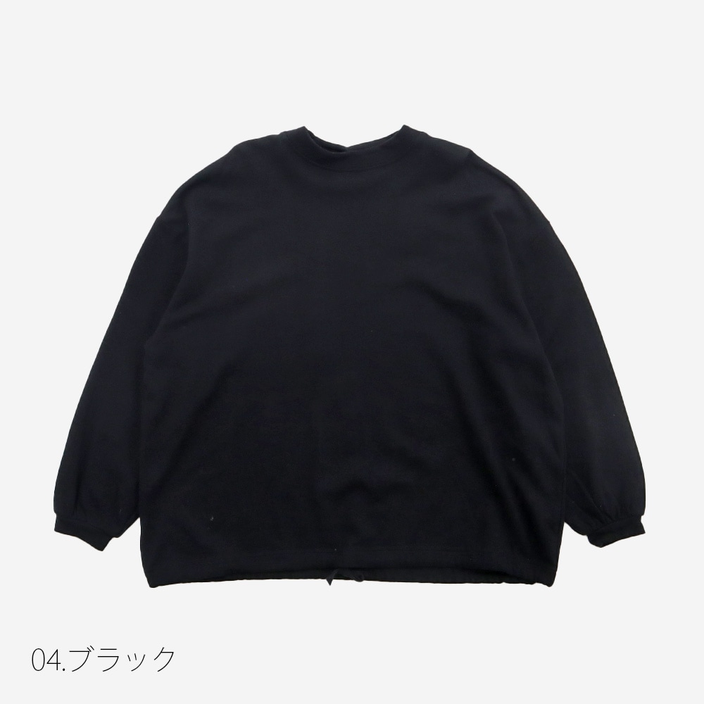 裾を絞ると丸みのあるシルエットに、絞らず着るとすっきりとしたラインに。気分やボトムに合わせて印象を変えられる、着こなしの幅が広がる一枚です。