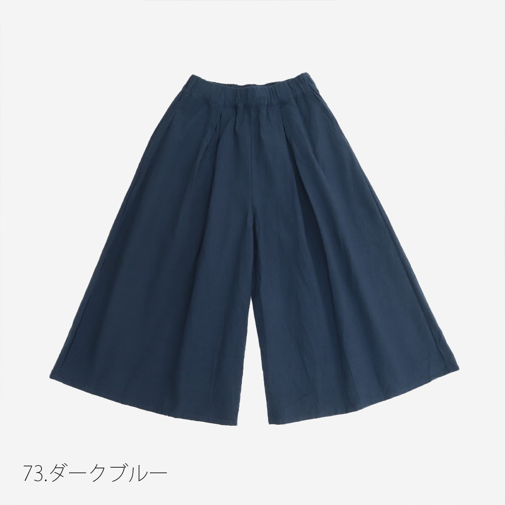 コットン100%のやさしい肌触りで、素肌にも心地よく。ご自宅で気軽にお洗濯できる扱いやすさも、日常に寄り添ううれしいポイントです。ウエストはリラックス感のある仕様で、長時間でもストレスフリー。きちんと感がありながらも、どこか抜け感のある佇まいが、大人の装いにちょうどいいバランス。