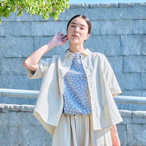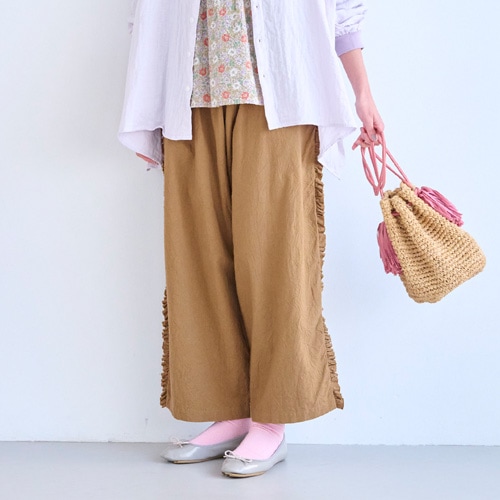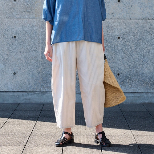 足首がすっきり見える軽やかな丈。靴下やシューズとのコーディネートも楽しめ、季節を問わず活躍します。パンツにボリュームがありながら、重く見えないバランスです。